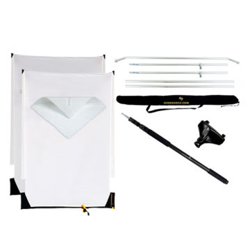The Sunswatter consists of a large, lightweight frame with diffusion fabric stretched tightly across it. When positioned between the sun and the subject, it transforms harsh midday light into soft, even illumination, reducing shadows and glare. This makes it particularly useful for fashion films, commercials, and interviews shot outdoors on Mallorca’s beaches, villas, or countryside estates.